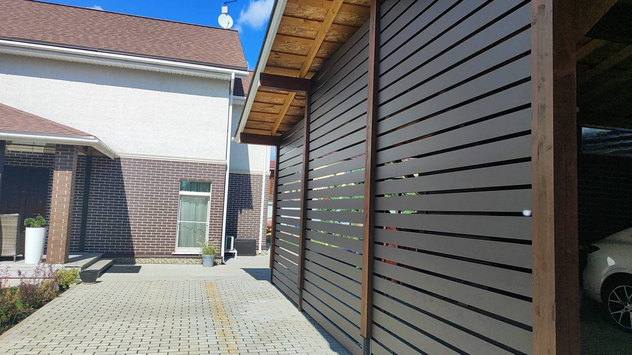 Ширина металлического планкена может быть: 100 мм., 120 мм., 150 мм., 200 мм. и 250 мм. Ограждение можно изготовить в комбинации планок разной ширины.