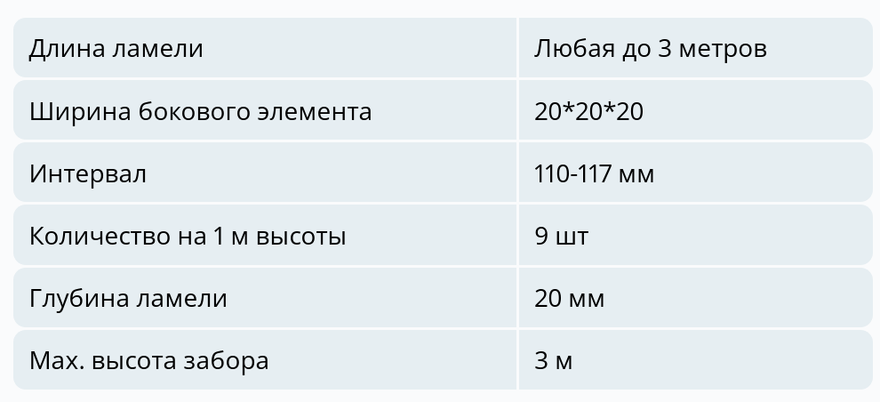 ПАРАМЕТРЫ ЗАБОРА ГРАЦИЯ