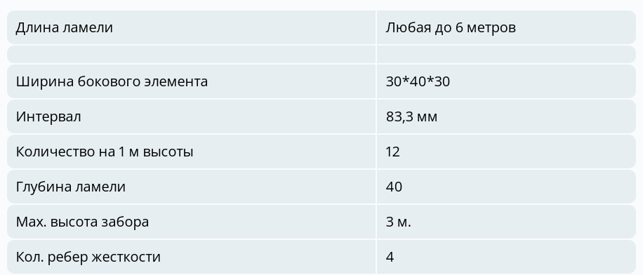 ПАРАМЕТРЫ ЗАБОРА ЛИНА