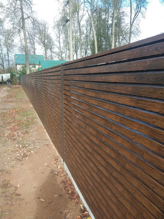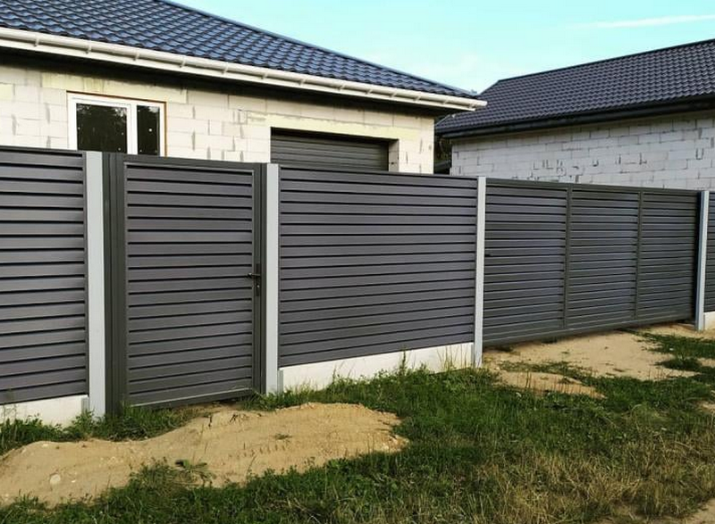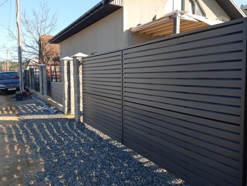 Забор жалюзи ЛИНА от Белорусского производителя UNISTRADE (ЮнисТрейд) - металлический забор-жалюзи из горизонтальных ламелей строгой формы с частичной просматриваемостью со стороны участка.