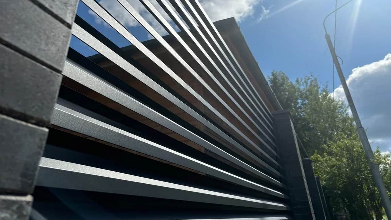 Толщина ламели забора-жалюзи ROYAL VIP с порошковым покрытием составляет 0,7 мм., 0,9 мм. или 1,2 мм., что позволяет не использовать в заборной секции усилители с обратной стороны забора. Увеличенная передняя полка ламели придает внешнему виду забора дополнительную премиальность. Забор с такой ламелью не только красивый, но и очень надежный. Качественное порошковое покрытие толщиной до 150 мкм. будет являться прочным и антивандальным, краска не будет обдираться при механических воздействиях. Эстетические свойства, высокая коррозионная стойкость, равномерность и толщина покрытия - преимущества заборов-жалюзи VIP серии с полимерно-порошковым покрытием. |