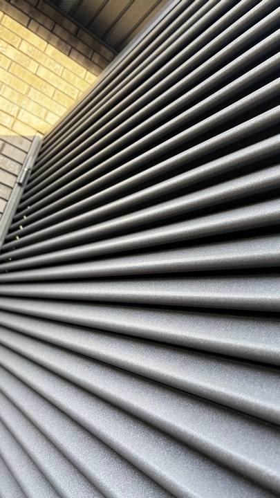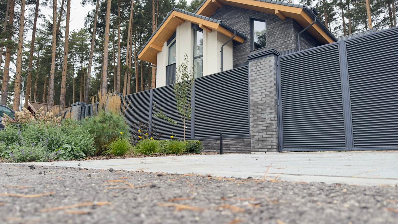 Забор жалюзи ТВИНГО отличается от других моделей тем, что конструкция "елочкой" полностью перекрывает обзор и является иделаьным вариантом ценителей приватности своего участка.