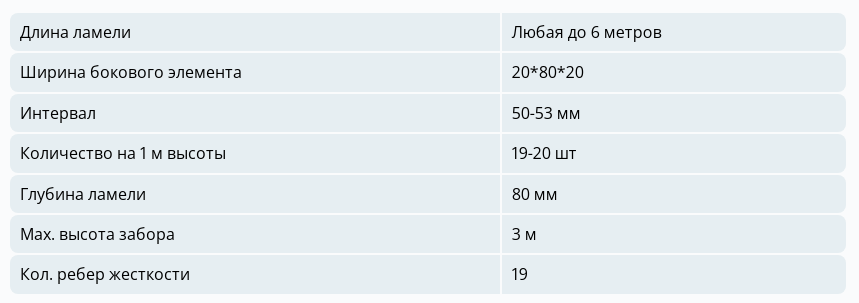 ПАРАМЕТРЫ ЗАБОРА ТВИНГО