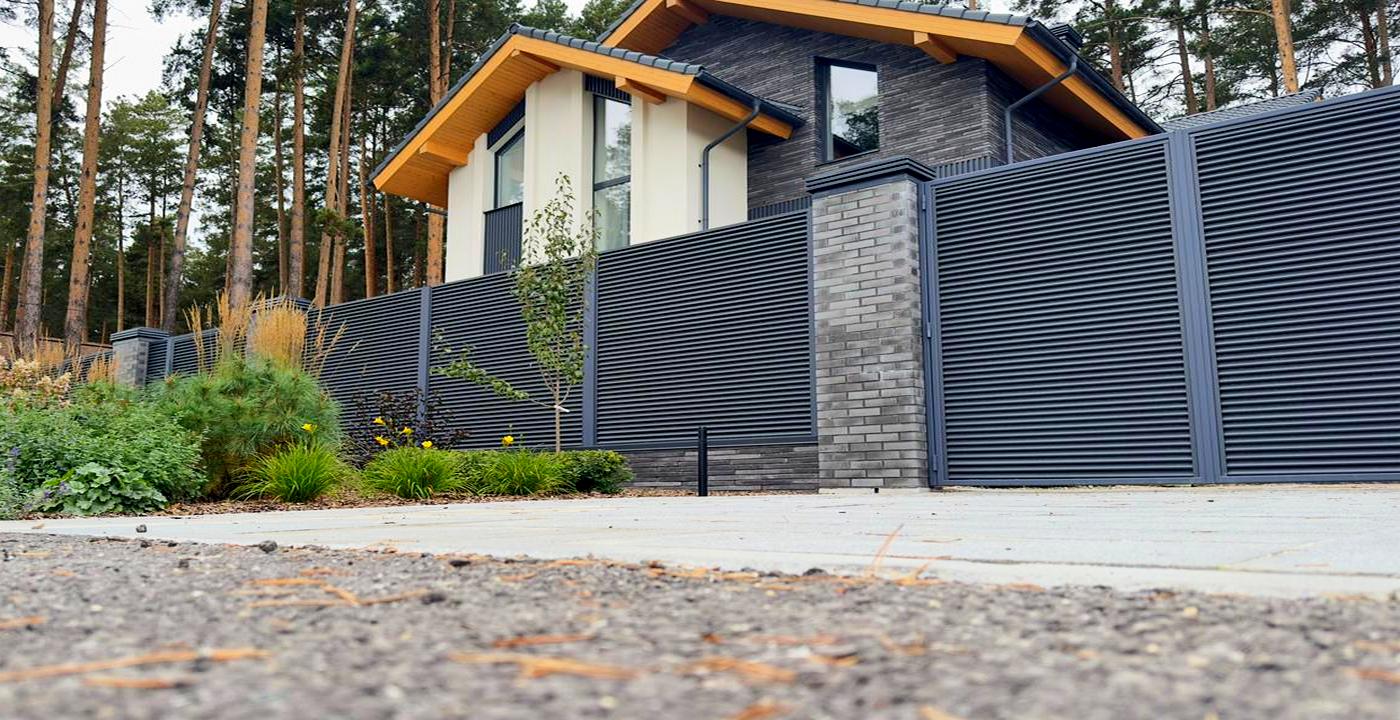 Металлические заборы жалюзи для современного частного дома сочетают эстетику, функциональность и долговечность. Они могут быть выполнены в различных вариантах дизайна горизонтальных ламелей. Комбинированные конструкции заборов в сочетании с камнем, деревом, кованными элементами и другими материалами позволят подчеркнуть индивидуальность архитектурного стиля.