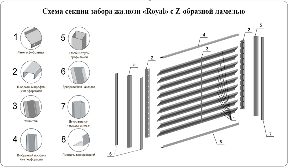 С конструкцией забора жалюзи из S-образных и V-образных ламелей Elite-S и Luxe-V можно ознакомиться ЗДЕСЬ